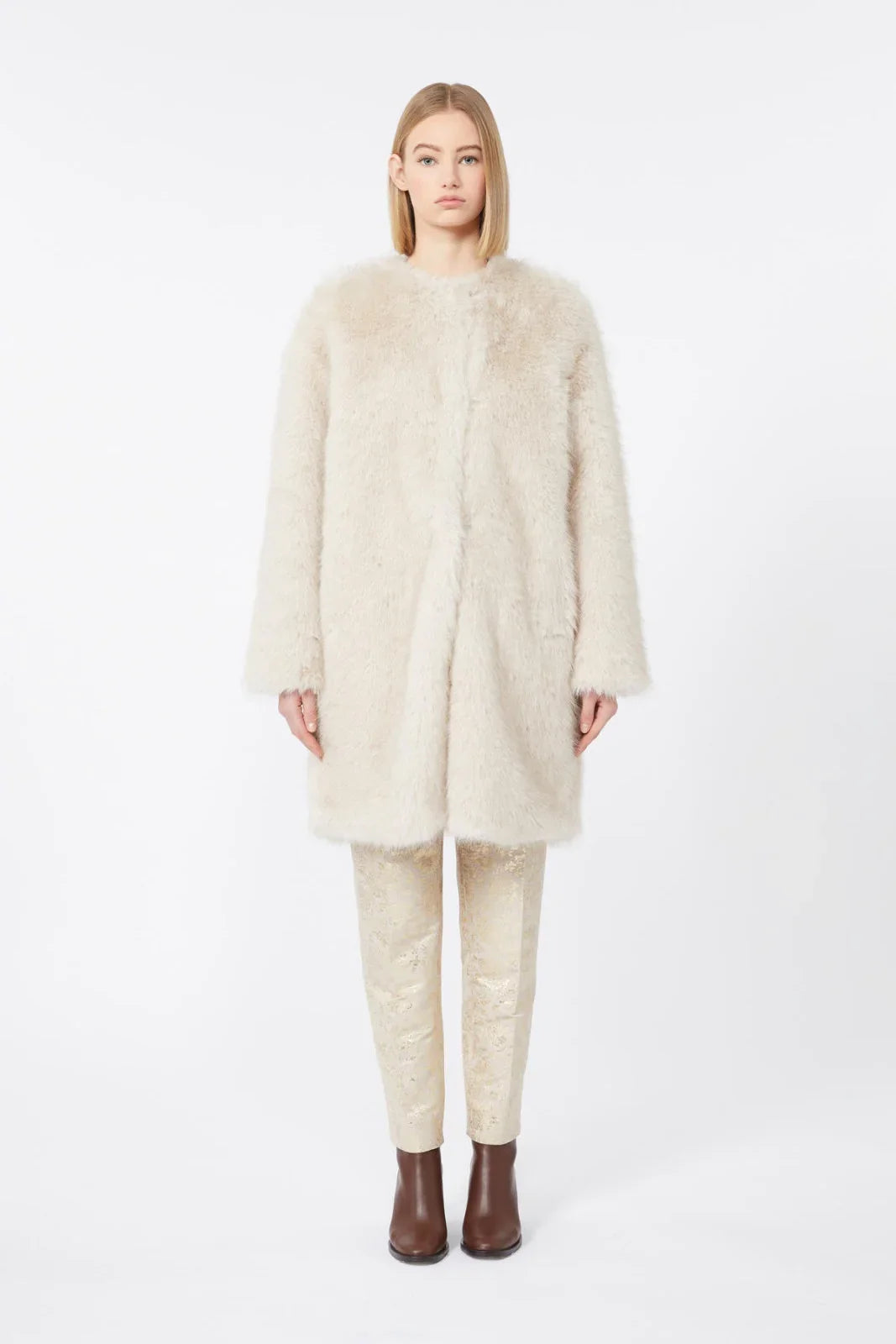 The Max Mara Studio Eros coat in cream offers elegant protection from the cold, ensuring comfort and style for every occasion. This piece enhances your fall/winter wardrobe, allowing you to face the coldest days with sophisticated femininity. Thanks to its refined design and 100% polyester composition, it is designed to last without sacrificing softness to the touch.