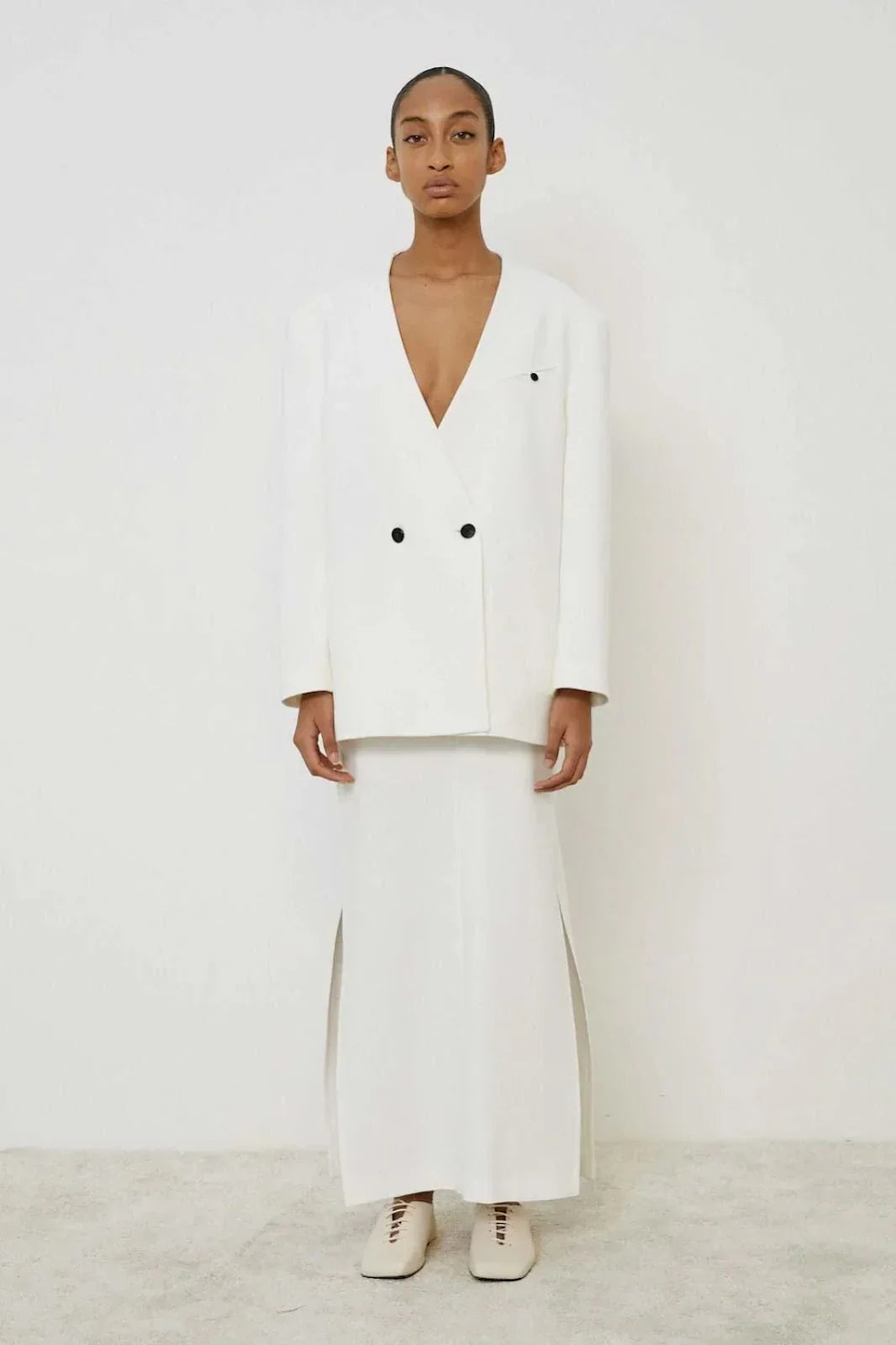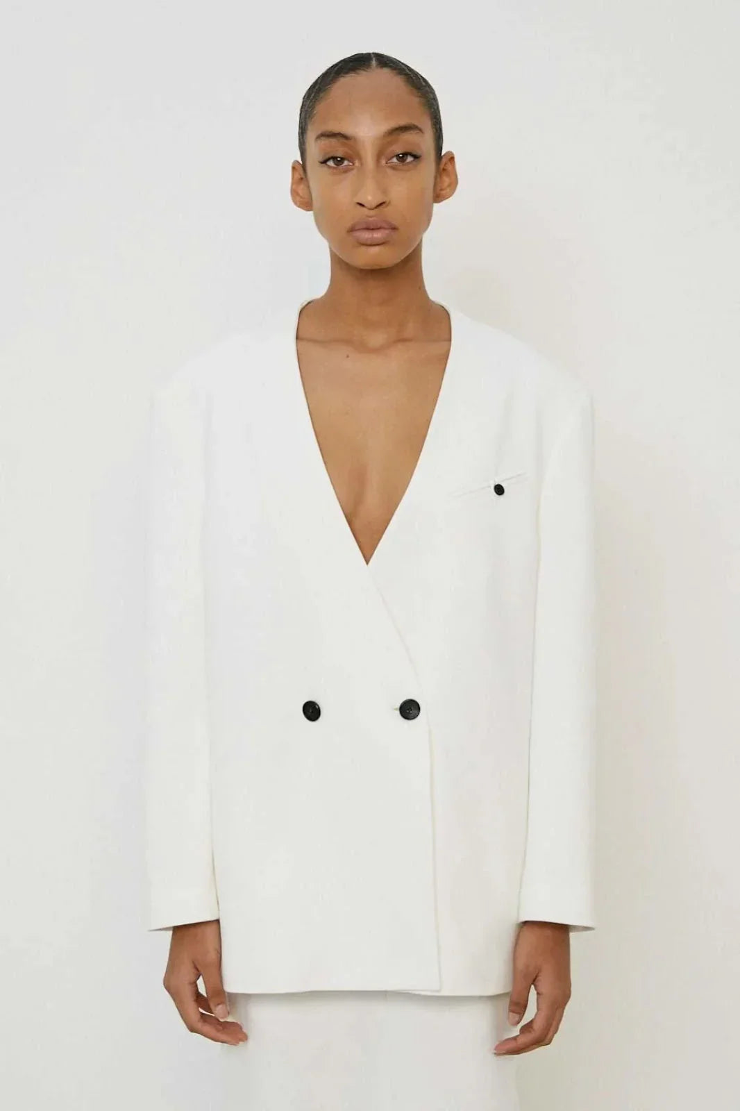 The MeiMeiJ Women's Jacket in white offers the perfect combination of elegance and comfort, ensuring a refined look for any occasion. Wearing this jacket, you achieve a timeless style that enhances any outfit, from a business meeting to an evening cocktail.