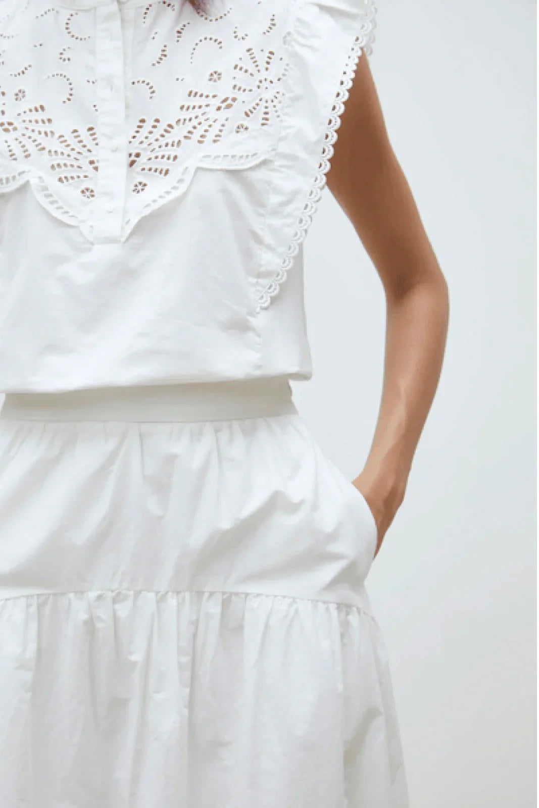 This white skirt offers versatility and freshness thanks to its lightweight fabric, making it the ideal choice for those who want to dress with elegance and comfort. Whether it's a stroll in the city or a special occasion, this garment provides a unique style.